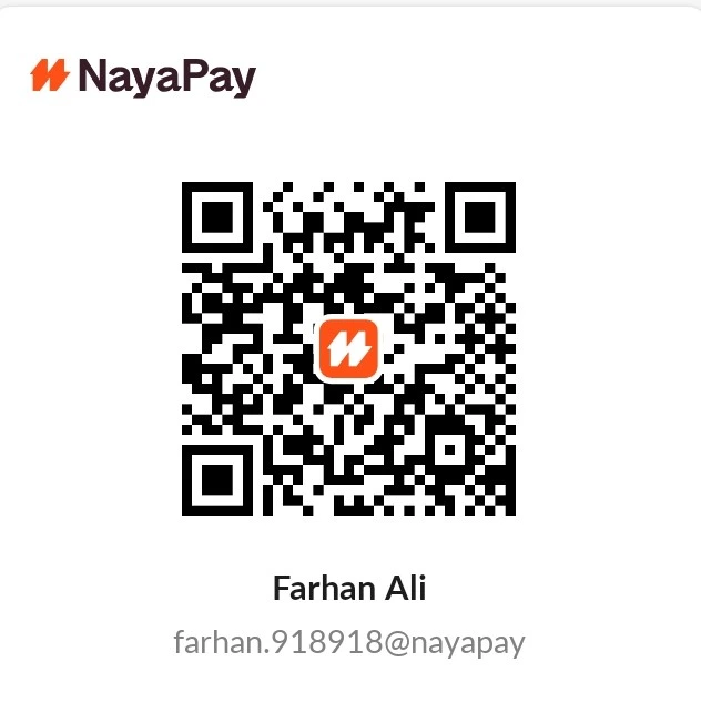 Scan the code below to pay to Farhan Ali.